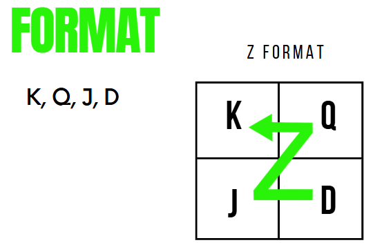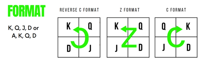 | 10 | 6 square U format | Played in Northcross Christian School Ryde NSW. U format - King, Queen, Joker, Knight, Jack, Dunce or King, Queen, Ace, Joker, Jack, Dunce. Extra large squares | |