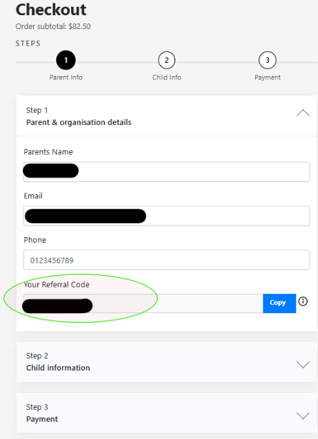 Referral codes are sent to you via email or can be accessed by logging into your child's profile on handballaustralia.com.au