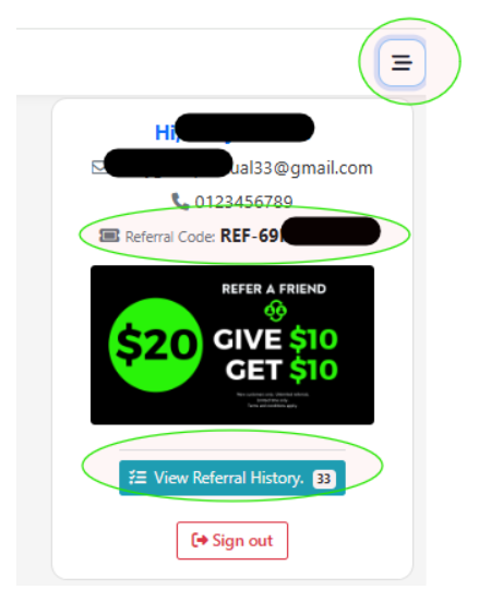 Step 4: Your friend/new customers who enrolled will also get a new referral code via email to refer their friends.